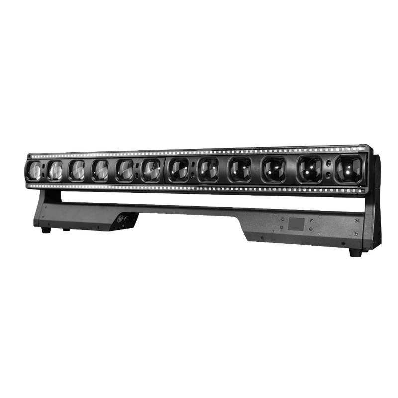 High-performance strip-type effect light with 12 independent controllable heads and Y-axis swing. Features super bright beam, pixel control, zoom, and dynamic effects for nightclubs, bars, KTV, stages, weddings, and live events.